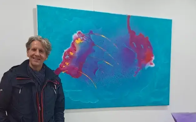 Klangflächen und -impulse auf der Leinwand. Die abstrakte Bildsprache in Kombination mit frei fliessenden Farbimpulsen, schafft eine universelle Kommunikation jenseits kognitiver Muster und lässt den Betrachter fühlen.
